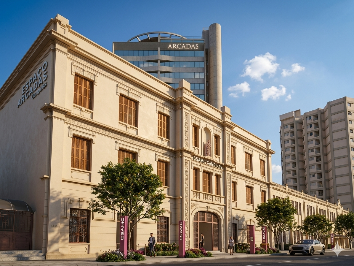 O Espaço Arcadas está localizado na Rua José Paulino, 1345, e é um dos predios comerciais em Campinas voltados ao perfil corporativo.